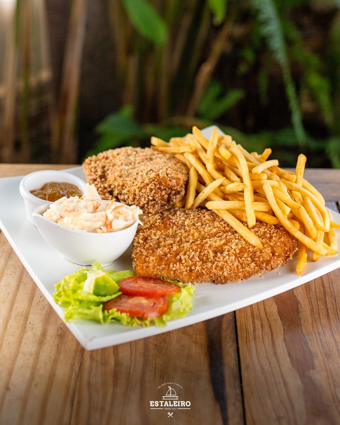 Nossa escolha do cardápio com variados pratos de peixe: Peixe Veleiro. Muito gostoso, aparência bonita. A salada Estaleiro não cumpriu o que prometeu, bem simples. De sobremesa Brownie com sorvete,... Leia mais porção grande e deliciosa!